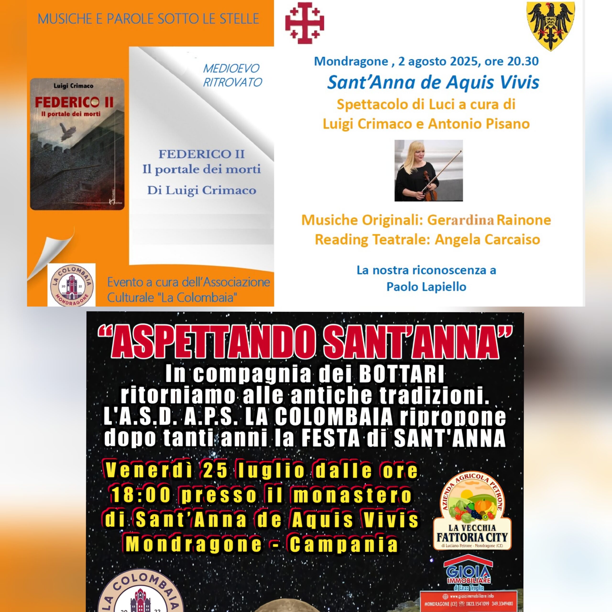 «Momenti di grande significato», ha sottolineato il vice presidente dell’Associazione Colombaia ASD APS, Mario Pisano. «Siamo partiti con poche aspettative, eppure siamo riusciti a organizzare serate piene d’emozione. Grazie a chi ci ha creduto, agli ospiti, agli sponsor e a tutti gli organizzatori, perché è solo grazie a loro se oggi Sant’Anna è tornata a splendere come una volta. Grazie anche al gruppo “Terrarium Bottari” e al suo frontman Raffaele Falcone: orgoglio mondragonese».