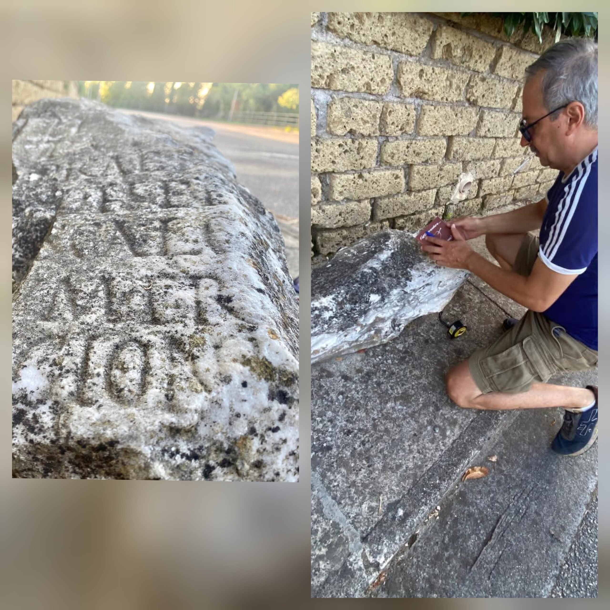 L’epigrafe è stata riportata alla luce dallo storico Marco Ceci, esperto di storia e di archeologia aurunca, che ha dichiarato: “Per la conoscenza che ho dei luoghi, ritengo si tratti di un ritrovamento fuori contesto e, pur avendo segnalato il reperto alla soprintendenza ed aspettando per la decifrazione, l’interpretazione, la paleografia e la traduzione del prof. G. Camodeca […], mi avventuro in una personale interpretazione.