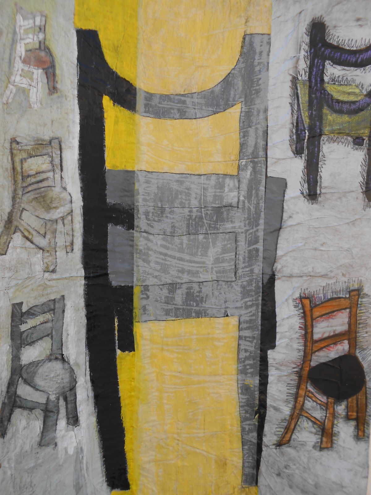 L’arte scatena energia e questa energia Rocco ed Elena la cavalcano ma non ci vogliono rassicurare, anzi, tendono di più a turbare, ad interrogare. Escono dalla forma tradizionale del quadro perché ogni opera è nel contempo centrale e periferica, non ci sono punti di riferimento. Materia, forma, colore, si rincorrono per perdersi e ritrovarsi tra labirinti, strade, ponti e attraversamenti, ideali per incontrarsi e divincolarsi in questo caos psicotico di crisi esistenziali e guerre e smarrimento morale che caratterizza il nostro perduto mondo contemporaneo. Fanno arte senza alcun pre-concetto, lasciando che l’arte parli da sola e si disveli al momento.