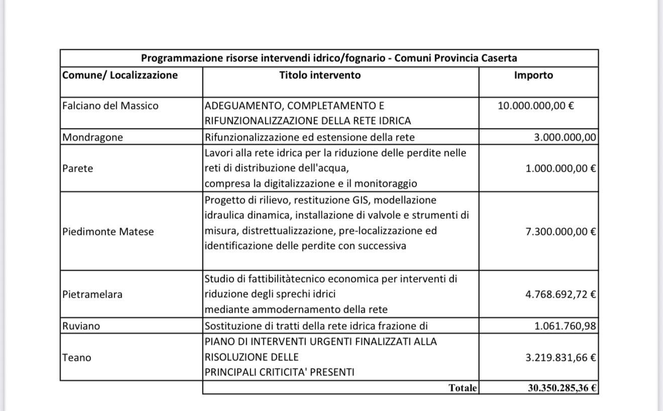 Ancora un regalo di De Luca a Zannini che annuncia: “Altri 30 milioni in Provincia di Caserta per efficientamento sistema idrico fognario”.