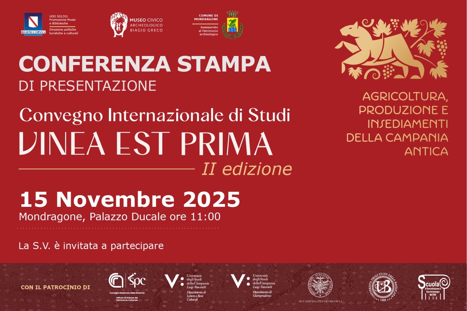 (di Marco Gallo) Il 15 novembre, presso il museo Civico-Archeologico di Mondragone sito all’interno del Palazzo Ducale, si terrà la conferenza stampa sulla seconda edizione del Convegno Internazionale di Studi “Vinea est prima. Insediamenti produttivi della Campania tra età antica e medioevo”.