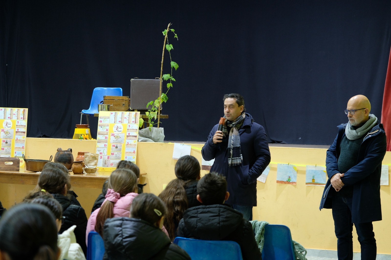 Oggi, alla presenza della dirigente scolastica Maria Luisa Salvia, del sindaco Guido Di Leone e dell’assessore all’istruzione Martina Izzo, i bambini hanno messo in scena una drammatizzazione a carattere distopico, guidati da Giuseppe Orefice di Slow Food Massico e Roccamonfina. Attraverso il linguaggio teatrale, gli alunni hanno immaginato un futuro in cui le tradizioni agricole, i prodotti sani e genuini e i semi antichi – come quello del fagiolo suscieglio – rischiano di scomparire se non vengono custoditi, raccontati e tramandati, sottolineando l’importanza della memoria, della cura della terra e della tutela del pianeta.